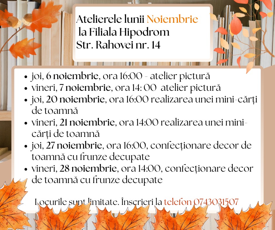 Luna noiembrie aduce noi activități creative la Filiala Hipodrom.