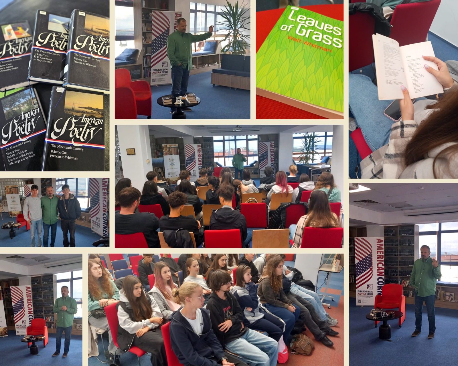 Ieri, 30 septembrie 2025, la American Corner Sibiu, Biblioteca Județeană ASTRA, a avut loc cea de-a doua sesiune din cadrul Zilelor Literaturii Americane/ American Literature Days – un proiect dedicat tinerilor, care valorifică excelența americană în cultură și educație, prin dialoguri despre poezie, libertate și creativitate.